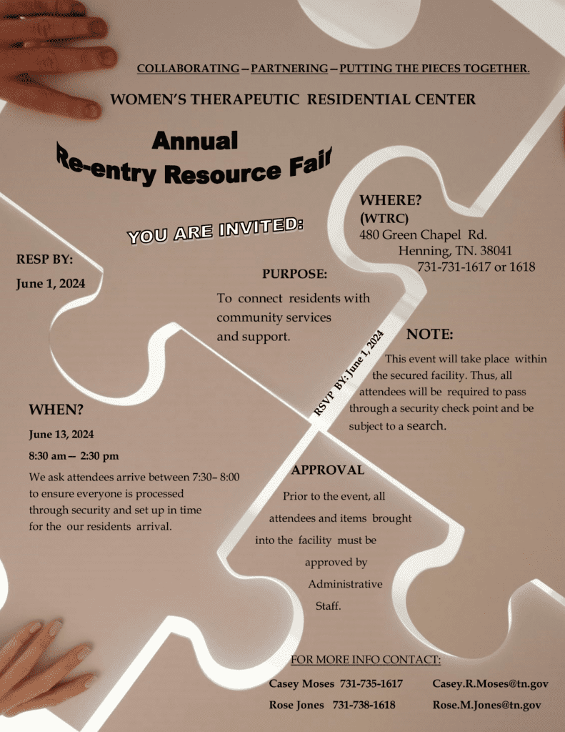The Tennessee Justice Bus has been invited to participate in a resource fair for the ladies at WTRC. This is a closed event for the women at WTRC.