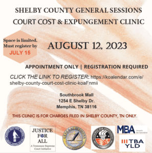 The TN Access to Justice Bus will be on-site with the Shelby County General Sessions Expungement Clinic. Registrants will have a chance to speak with an attorney about expungements, get help filling out petitions and filing for expungements, and ask questions about expungements.