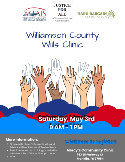 The ATJ & TALS has partnered with Hard Bargain in Williamson County again this year to host a wills clinic.