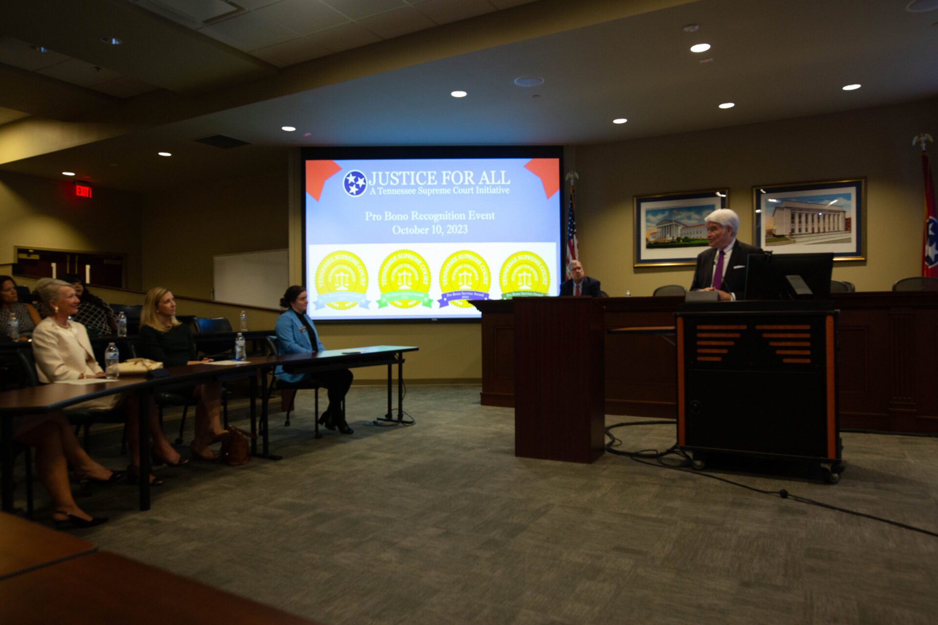 The TN Supreme Court and its Access to Justice Commission held the first in-person pro bono recognition ceremony since 2019 on Tuesday, October 10, 2023. The event took place at Belmont College of Law.